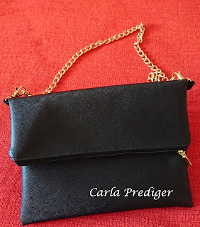 A primeira, fiz em preto e coloquei uma corrente dourada para transformar ela em tiracolo.